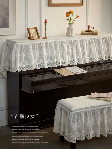 鋼琴罩 鋼琴防塵罩 輕奢現代簡約蕾絲鋼琴罩半罩新款鋼琴巾全罩高檔防塵古箏鋼琴蓋布『cyd7942』
