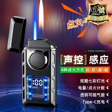 洪663高科技聲控智能打火機雙火切換透明可視機芯充氣防風火機