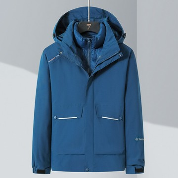 男款藍黑拼接防水透氣保暖連帽抓絨內裡三合一外套|89YX7OW