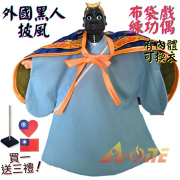 【A-ONE 匯旺】外國黑人 布袋戲偶 練功偶 有內體可換衣 (送台灣國旗徽章 戲偶架) 懷舊功夫 布偶人偶手偶玩偶【領券滿額再折千12/31止】