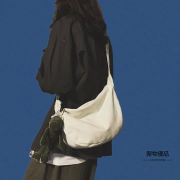側背包 帆布側背包女大學生大容量港風上課斜背包餃子包文藝布包
