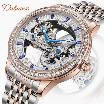 dulunwe 手錶 專櫃 6046 新款鏤空潮流全自動機械錶 時尚防水機械錶奢華鋯石 男表【亞德機械五金家居】