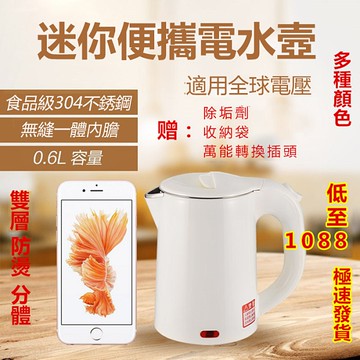 現貨快煮壺 出版旅行電熱水壺不銹鋼110v220v分體燒水壺便攜式迷你旅游電水杯