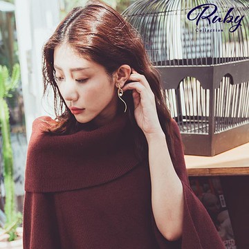 耳環 RCha。韓‧奢華風垂墜流線雙圈夾式耳環-露比午茶