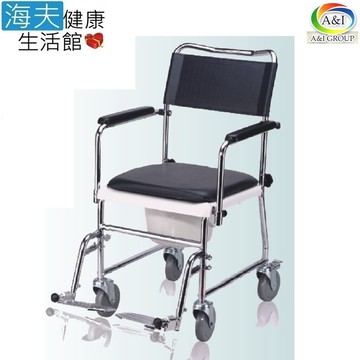 【海夫健康生活館】杏華 不鏽鋼 便椅洗澡椅 專利橫推把 掀手 塑輪 塑背(ST021-5TQ)