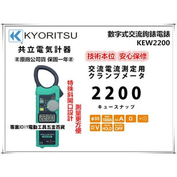 KYORITSU 共立電器 數位交流鉤錶 (KEW-2200) ACV DCV AC電流 電阻 導通蜂鳴