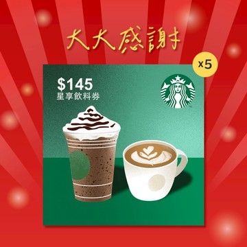 [大大感謝!]【星巴克】145元星享飲料券(限最低購買數為5)