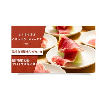 *優惠期間內如欲於週六、日或國定假日(特定節慶假期除外)使用本禮券,每位可於凱菲屋現場另外支付新台幣貳佰捌拾元整(NT$280)。敬請事先預約,台北君悅酒店訂位專線:02-27201230。