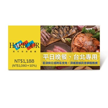 ●本券可於漢來海港餐廳台北敦南店、台北天母店使用,限一人使用,可兌換一客單人平日晚餐。