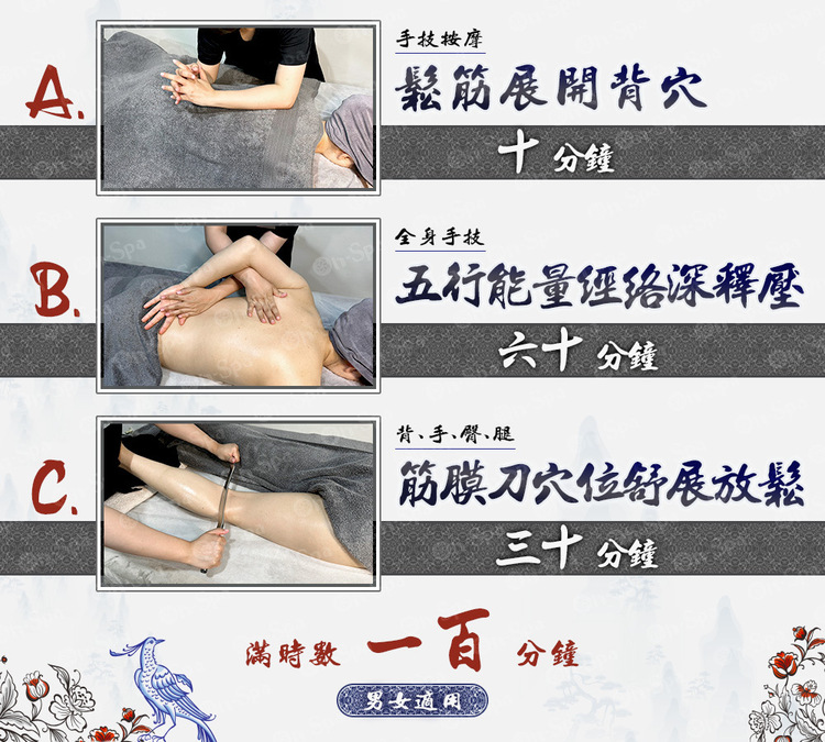 B.全身手技五行能量經絡深釋壓 60分 鐘
