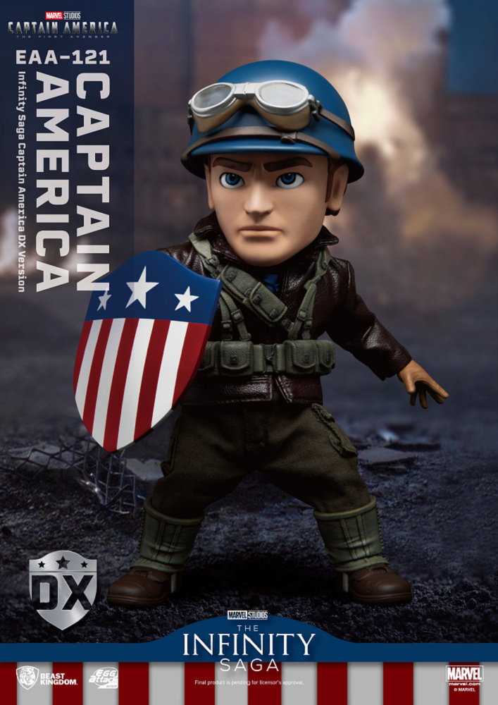 娛樂品牌「野獸國」旗下「6吋高可動人偶」EAA系列,推出「美國隊長 豪華版」高可動人偶收藏,還原電影中經典外觀設計,附上兩套不同材質製成的服裝,將美國隊長在軍營中勞軍及救援被俘虜士兵時的兩套服裝完整還原,配件服上劇中金屬製經典盾牌及衝擊件特效,提供影迷們更多樣化玩法及擺設樂趣。漫威迷們別錯過!現在就將美國隊長收藏帶回家!