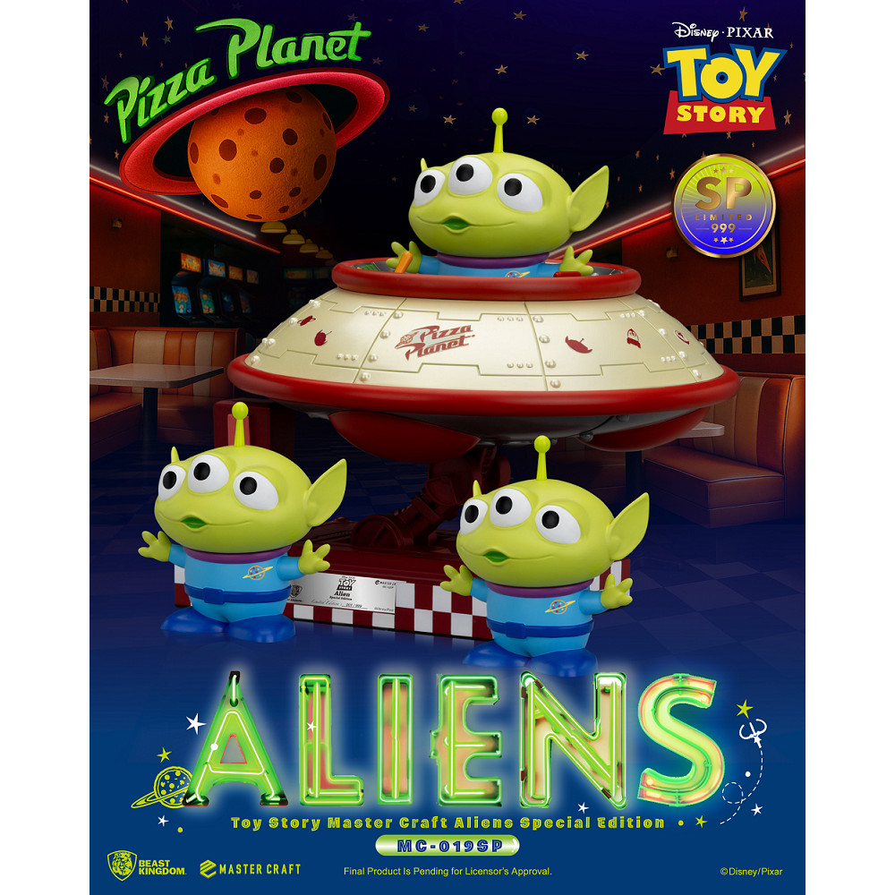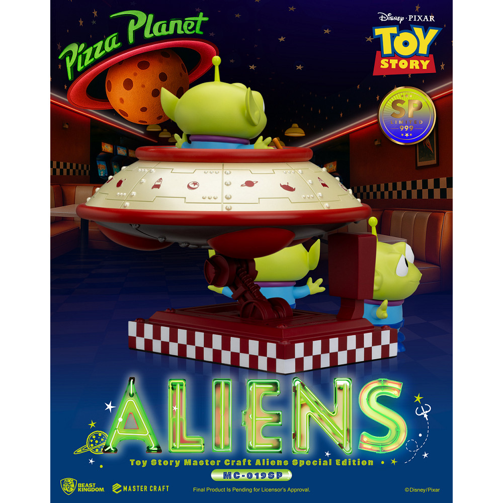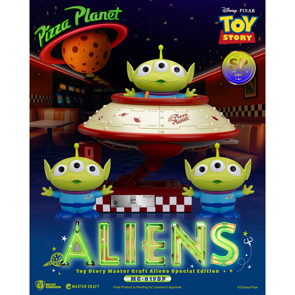 底座設計呼應 Pizza Planet 的經典紅白格紋,並鑲有限量編號銘牌,全世界限量僅發行 999 體,隨盒附上專屬保證卡,是三眼怪粉絲們絕對不容錯過的夢幻逸品!