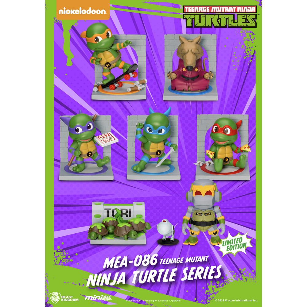 Cowabunga!! 「野獸國」Mini Egg Attack 推出超經典美系動漫《忍者龜》系列【MEA-086 忍者龜 盲盒套組】!重新詮釋經典角色,結合可愛與帥氣設計風格,呈現《忍者龜》的多位角色。包括忍術大師史林特師傅、四位性格互補的忍者龜:李奧納多、拉斐爾、米開朗基羅與多納太羅,以及追擊史林特師傅和忍者龜們的機械捕鼠者與機械忍者龜,還有四隻小烏龜接觸TCRI變異藥劑「粘稠」的經典畫面。