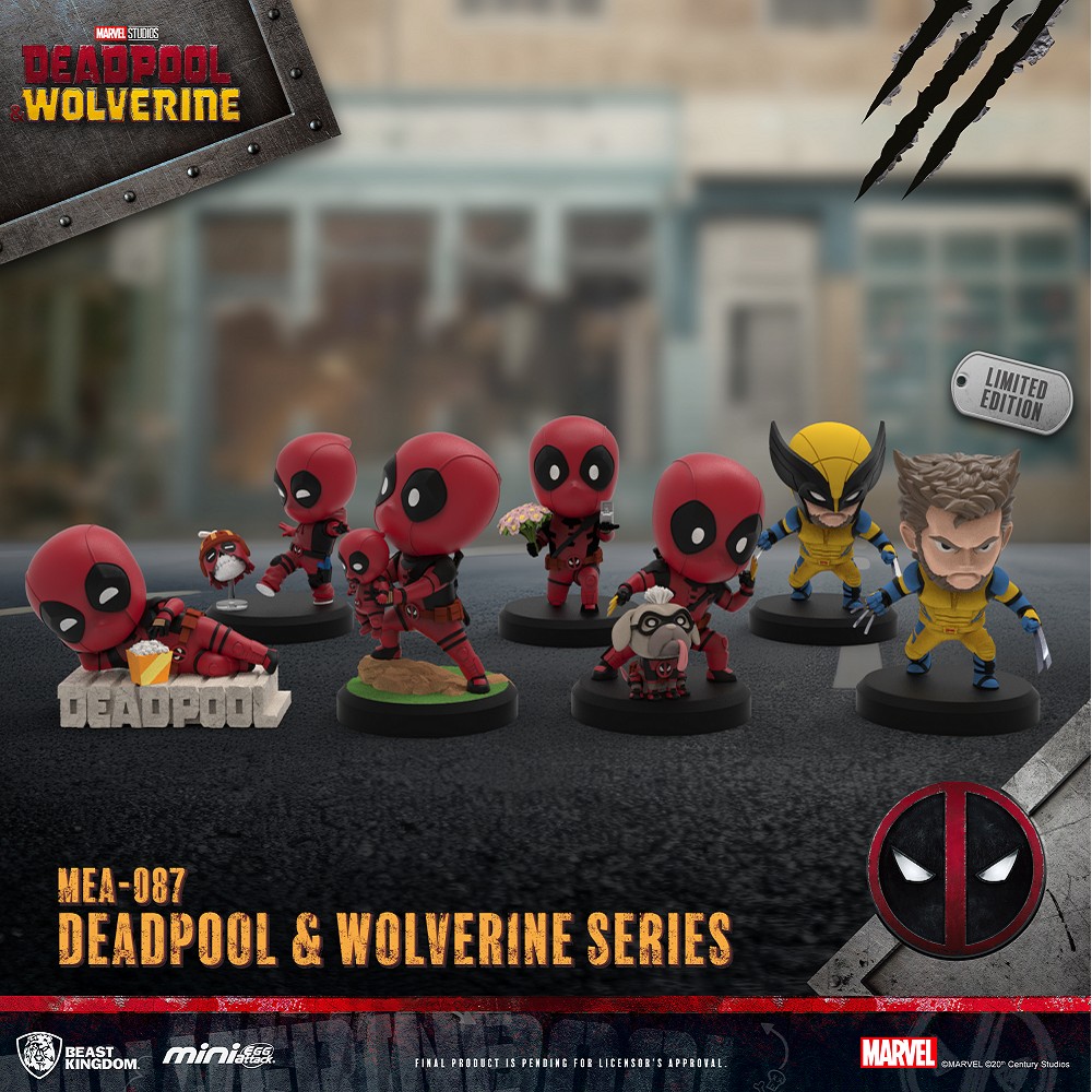漫威電影《死侍與金鋼狼》中小賤賤與狼叔終於迎來了首次大螢幕合體,娛樂體驗品牌「野獸國」旗下經典3吋Mini Egg Attack系列,推出「MEA-087 死侍與金鋼狼系列」,將《死侍與金鋼狼》中金鋼狼與各個平行宇宙死侍的俏皮?可愛的模樣刻畫成Q版迷你雕像,重現經典場景。