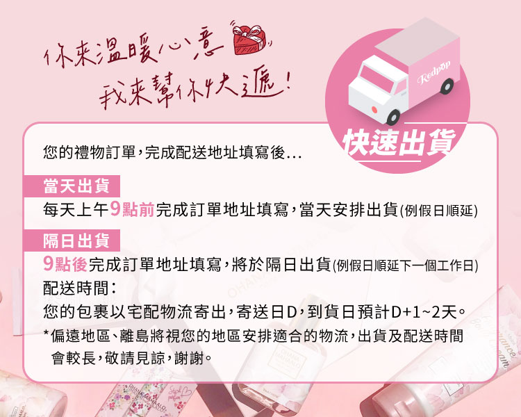 ・送禮訂單,若在成立訂單時未填寫收件者地址,收件者可以至「我的 / 商品票券 / 點擊商品 / 填寫地址。若在成立訂單後10天內未填寫地址,則訂單將自動取消。
