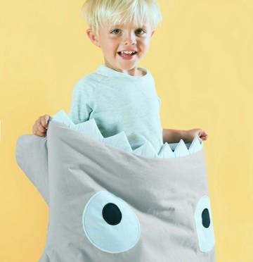 乖乖快入睡【BabyBites 鯊魚咬一口】 西班牙進口純棉兒童多功能睡袋 - 卡其灰粉(標準兒童版) 寶寶包巾 睡袋 防踢被 新手爸媽 新生兒 彌月禮