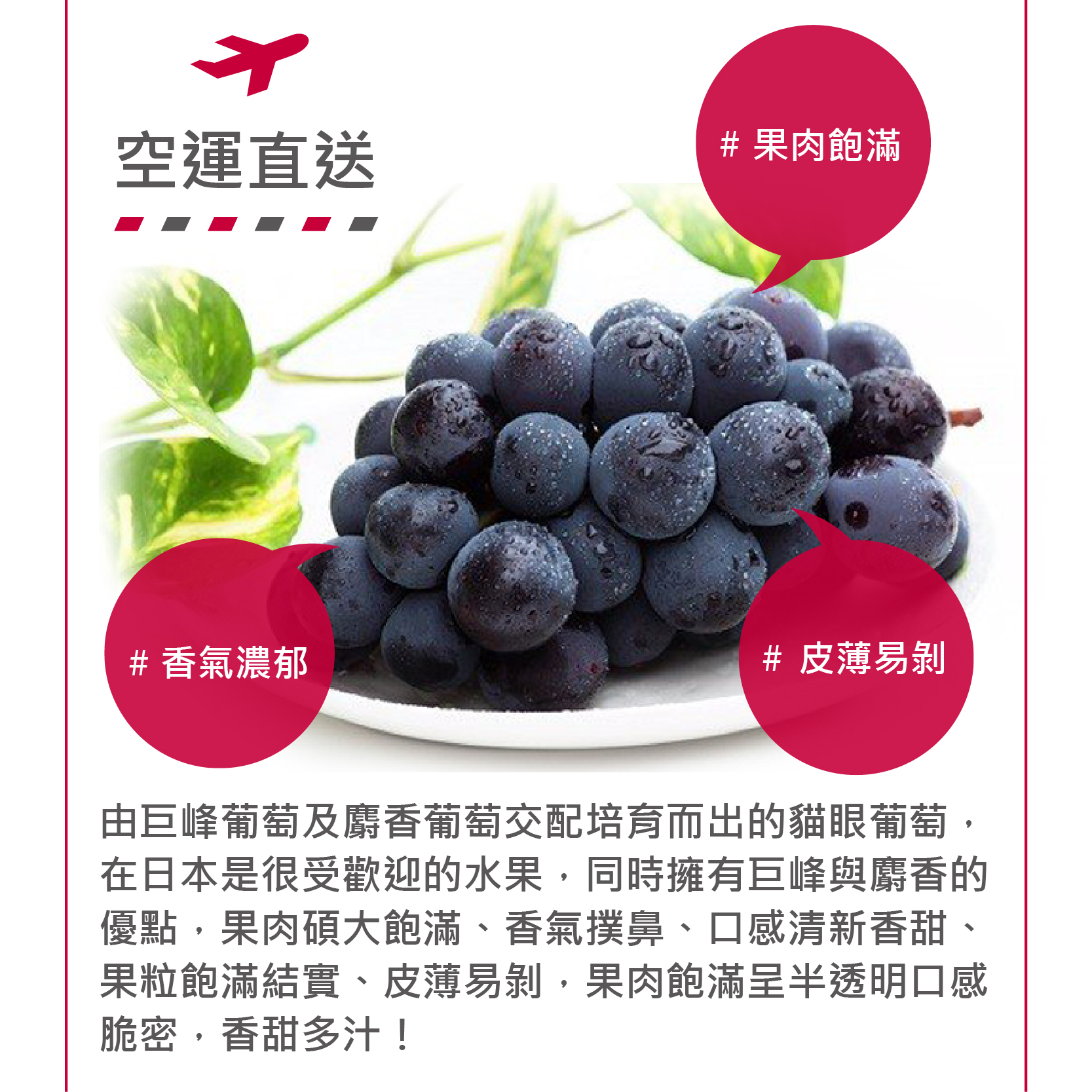 - 貓眼葡萄肉質紮實,極富彈性