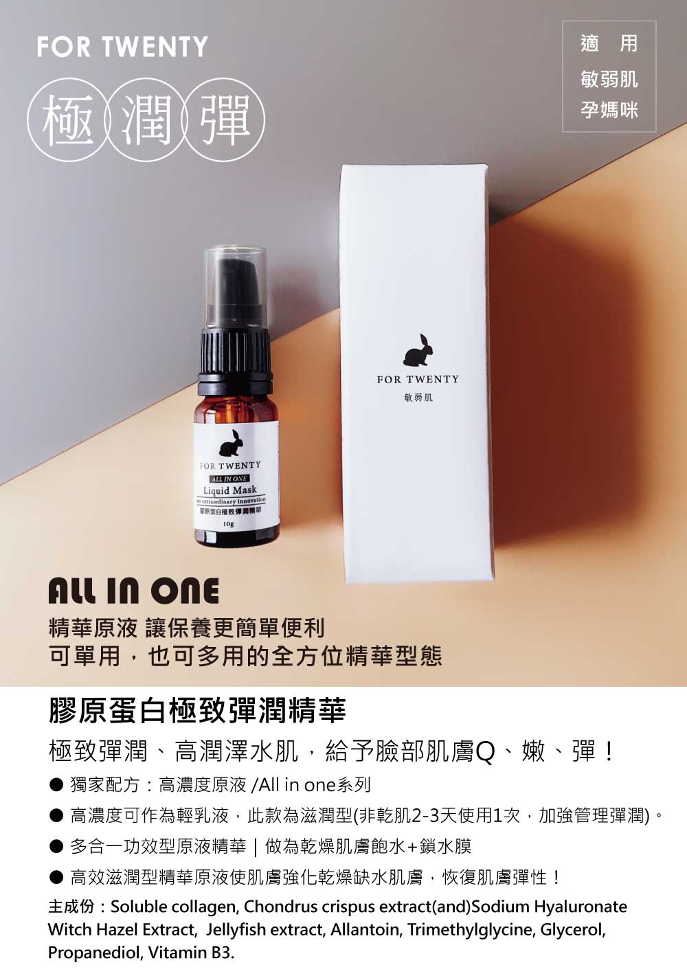 保濕祭》讓妳的皮膚像王妃一樣漂亮✨💝【FOR TWENTY】膠原蛋白極致彈潤精華10ml❤極致彈潤、高潤澤水肌♥給予臉部肌膚Q、嫩、彈☆寵愛女人必備დⅣ 【Shopping99】