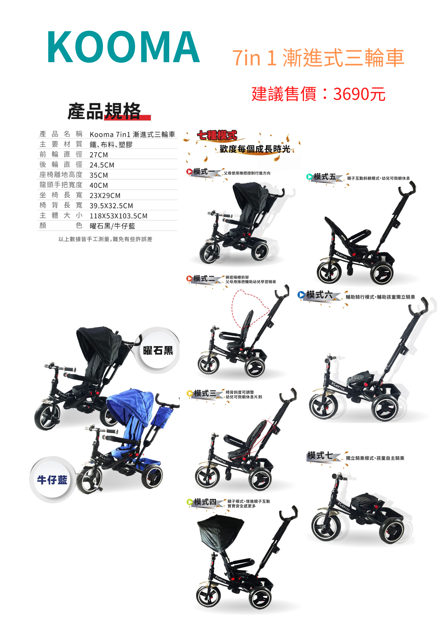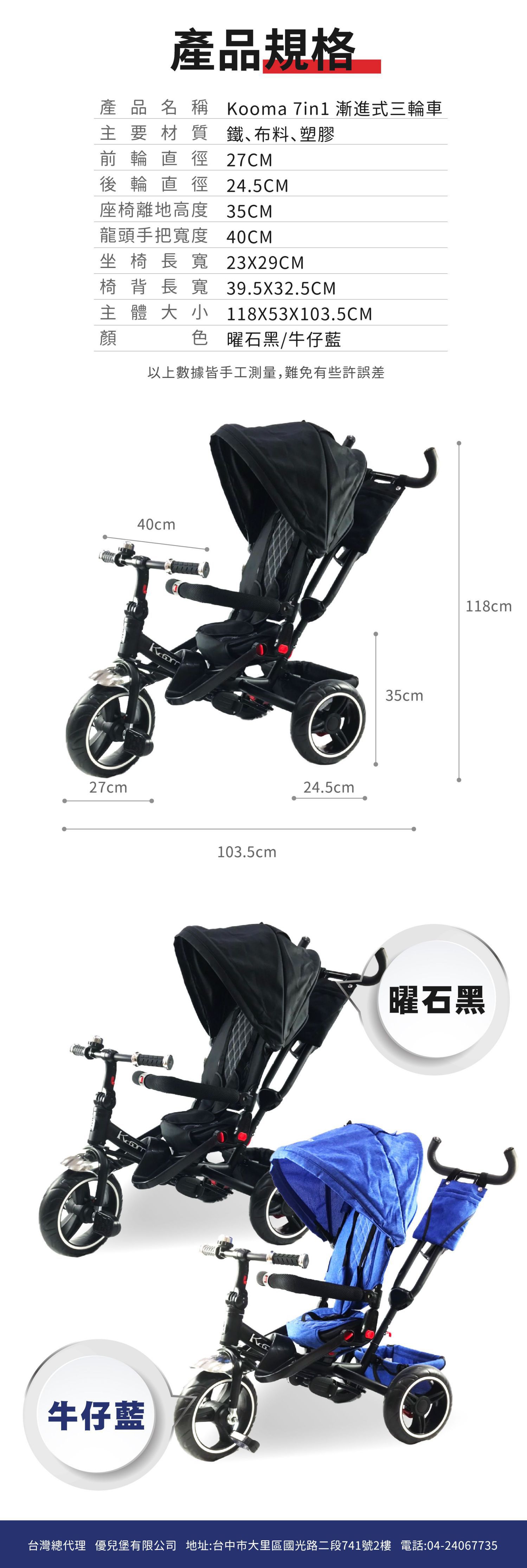 ◆ 品名:7in 1 漸進式三輪車