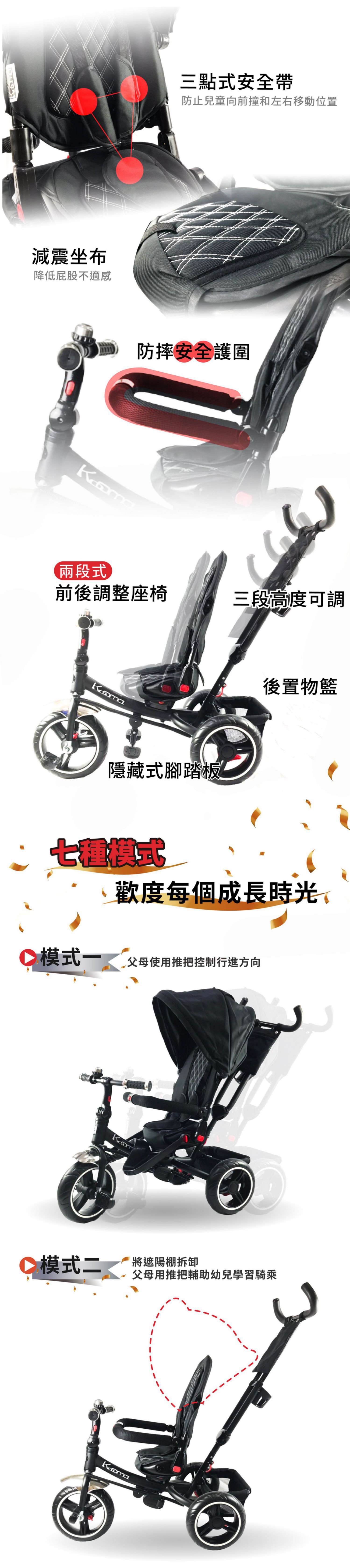 ✨讓小朋友贏在起跑點✨【Kooma】7in1 漸進式三輪車 小孩各階段皆可使用❤️附鈴鐺、置杯架、隨車置物袋、隨車置物籃|保護寶寶乘坐安全|寶寶小孩腳踏車/自行車❺❽(SHOPPING99)