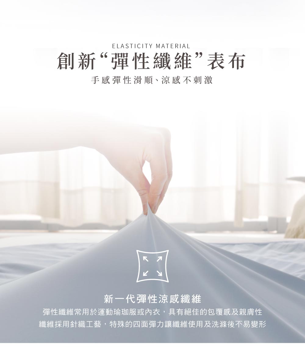 .彈性涼感表布,透氣不悶熱