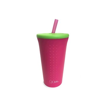 100% 鉑金級矽膠【GoSili 】TOGO矽膠吸管隨行杯 - 16oz 小桃紅 外出 出遊 矽膠環保杯 隨行杯 防漏杯蓋 時尚環保