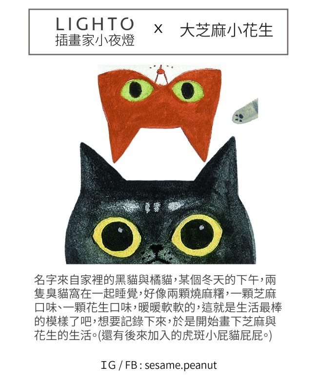 LIGHTO光印樣,插畫家 大芝麻小花生 貓咪疊羅漢 耶誕款,耶誕節小夜燈。
