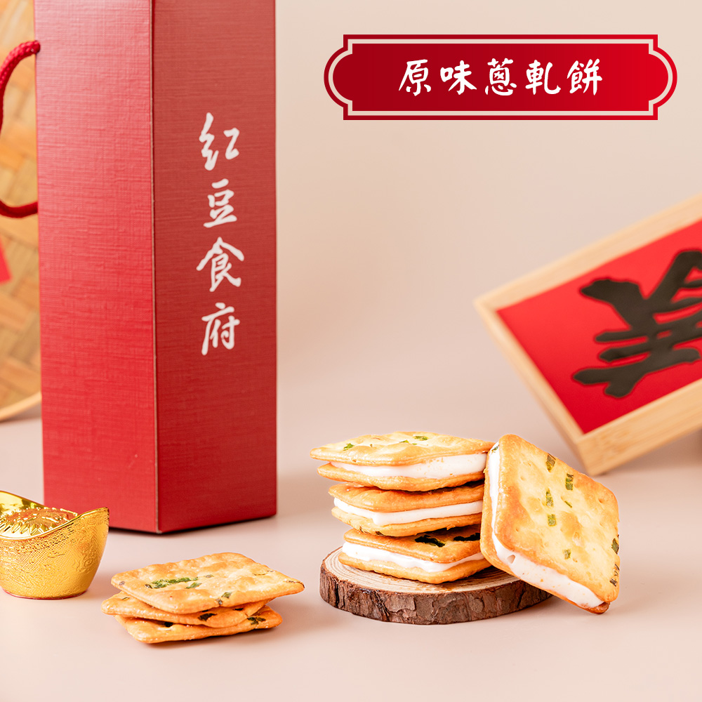 原味蔥軋餅:蔥味蘇打餅((麵粉、棕櫚油、青蔥、蔗糖、食鹽、酵母、碳酸氫鈉(小蘇打))、麥芽糖、高級白巧克力鈕扣(完全氫化棕櫚仁油、蔗糖、脫脂奶粉、乳糖、可可脂、大豆卵磷脂、乳化劑(脂肪酸甘油脂、脂肪酸蔗糖酯)、香莢蘭醛)、蔗糖、蛋白