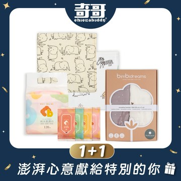 ⭐快速出貨⭐溫柔寶寶呵護組合【bimbidreams】竹纖維紗布包巾2件組禮盒 120x120cm+純水柔濕巾30抽(4入/一組) 贈防潑水迷你包|寶寶新生兒禮、滿月禮、彌月禮、嬰兒禮盒、奇哥總代理