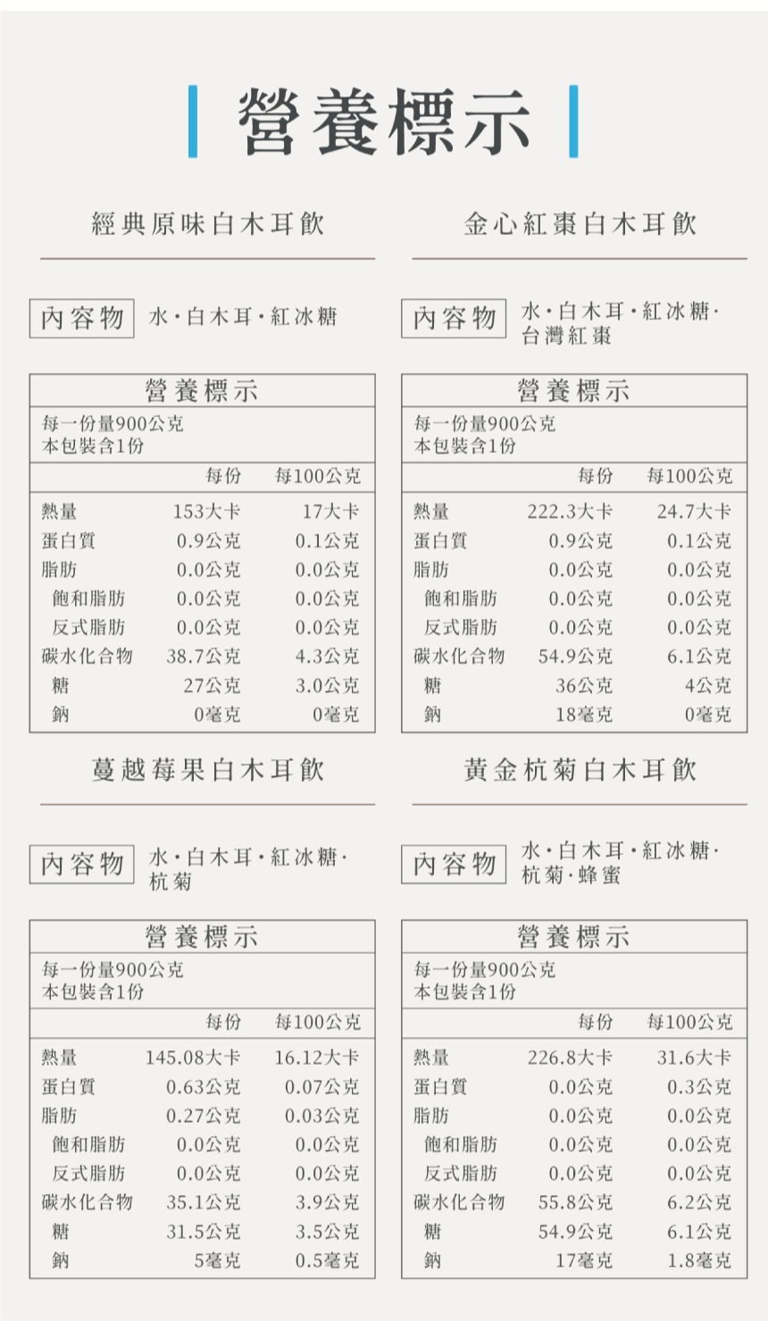 口味:經典原味x1瓶、金心紅棗x1瓶、黃金杭菊x1瓶、蔓越莓果x1瓶