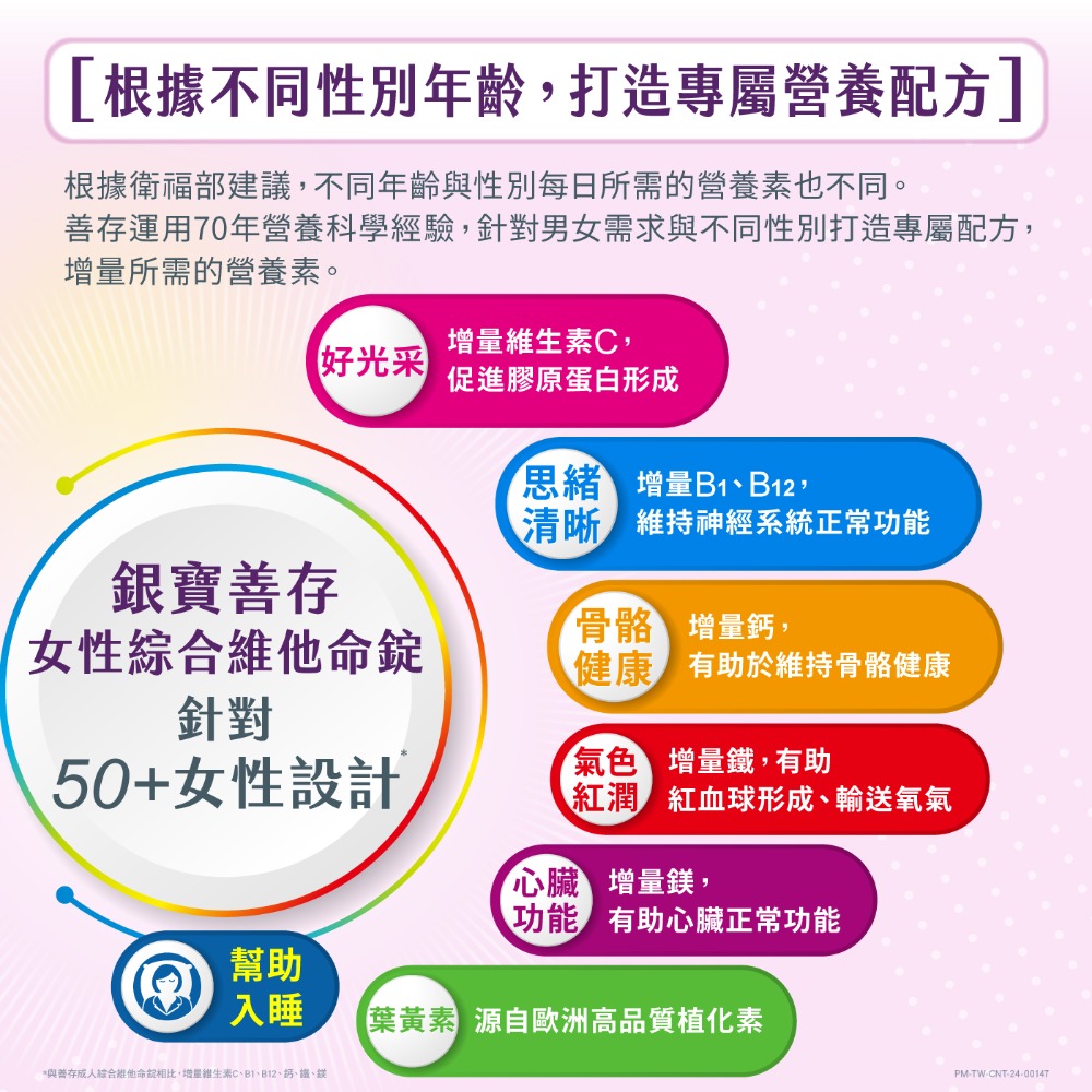 1.商品品名: 銀寶善存 50+女性綜合維他命