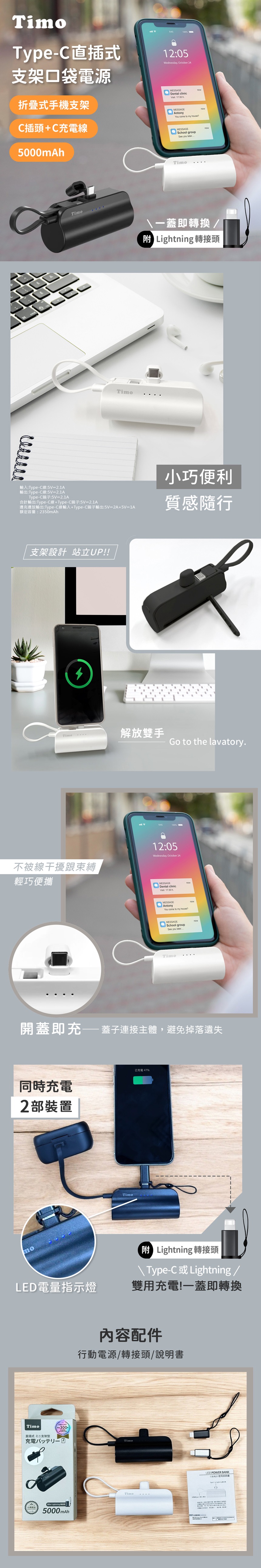 內容物:行動電源、說明書、C to Lightninig轉接頭