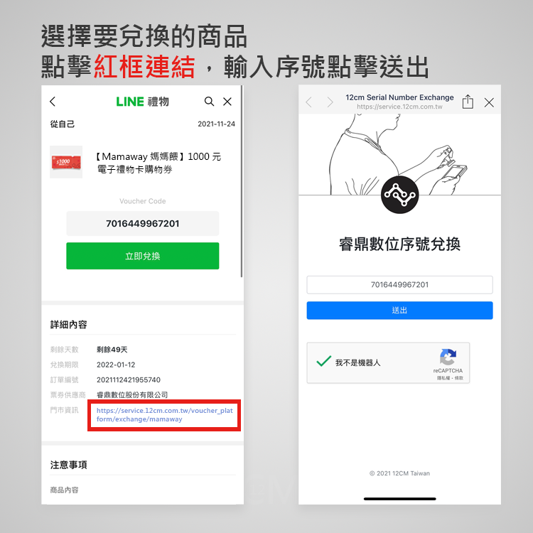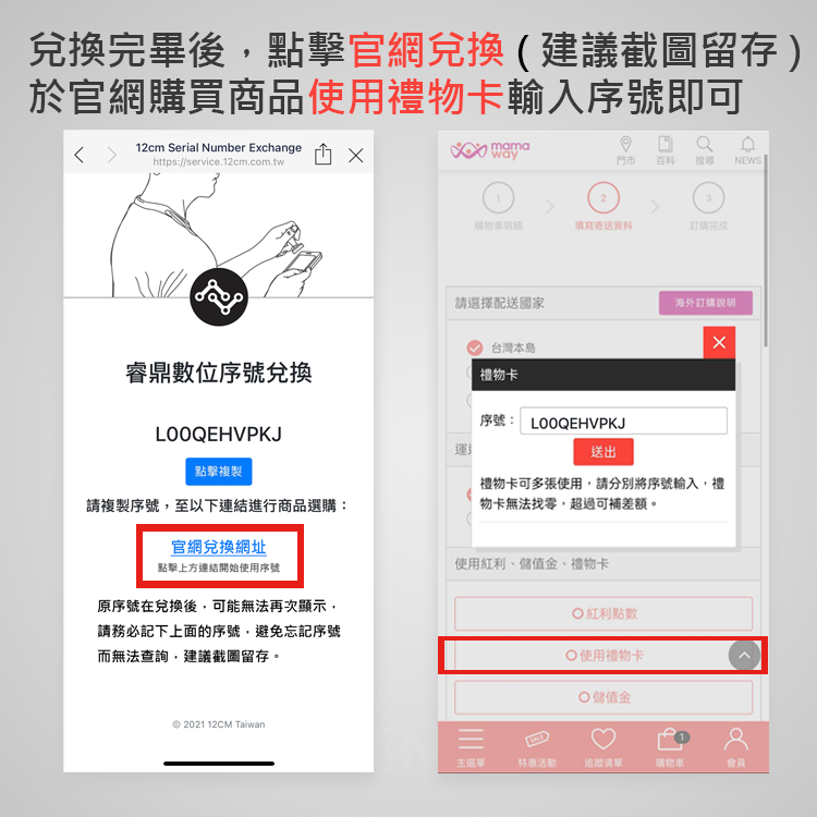 請於兌換序號後,拿著序號至MAMAWAY 媽媽餵使用