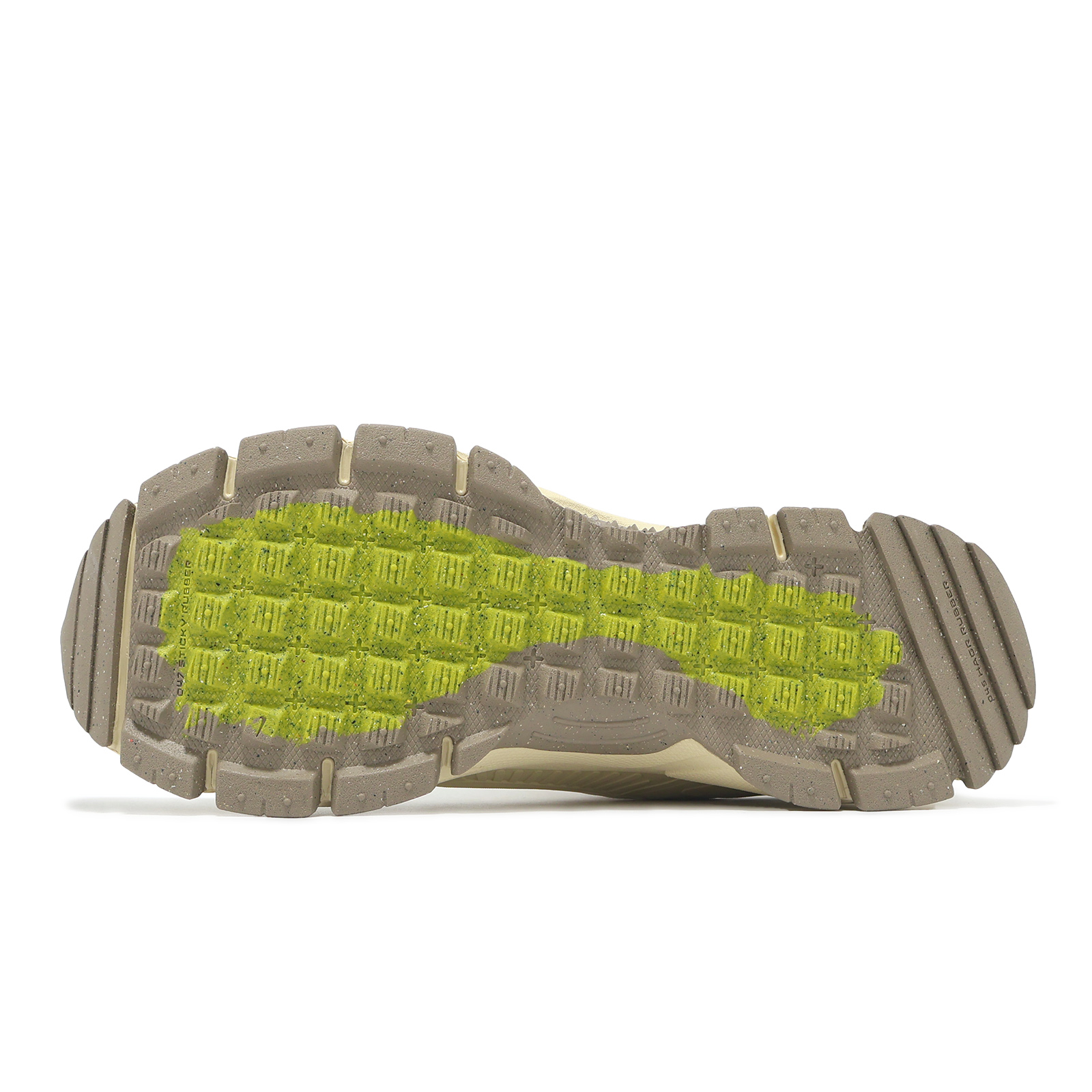 * 外底周圍包邊採用硬質橡膠,在高磨損區域實現卓越耐穿性,內部採用黏性橡膠,在崎嶇地形中增強抓地力和腳感。