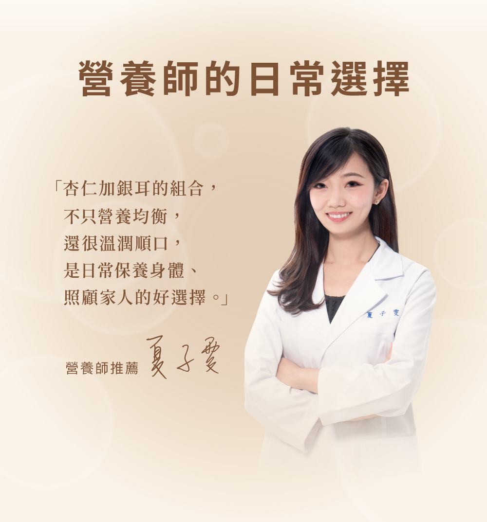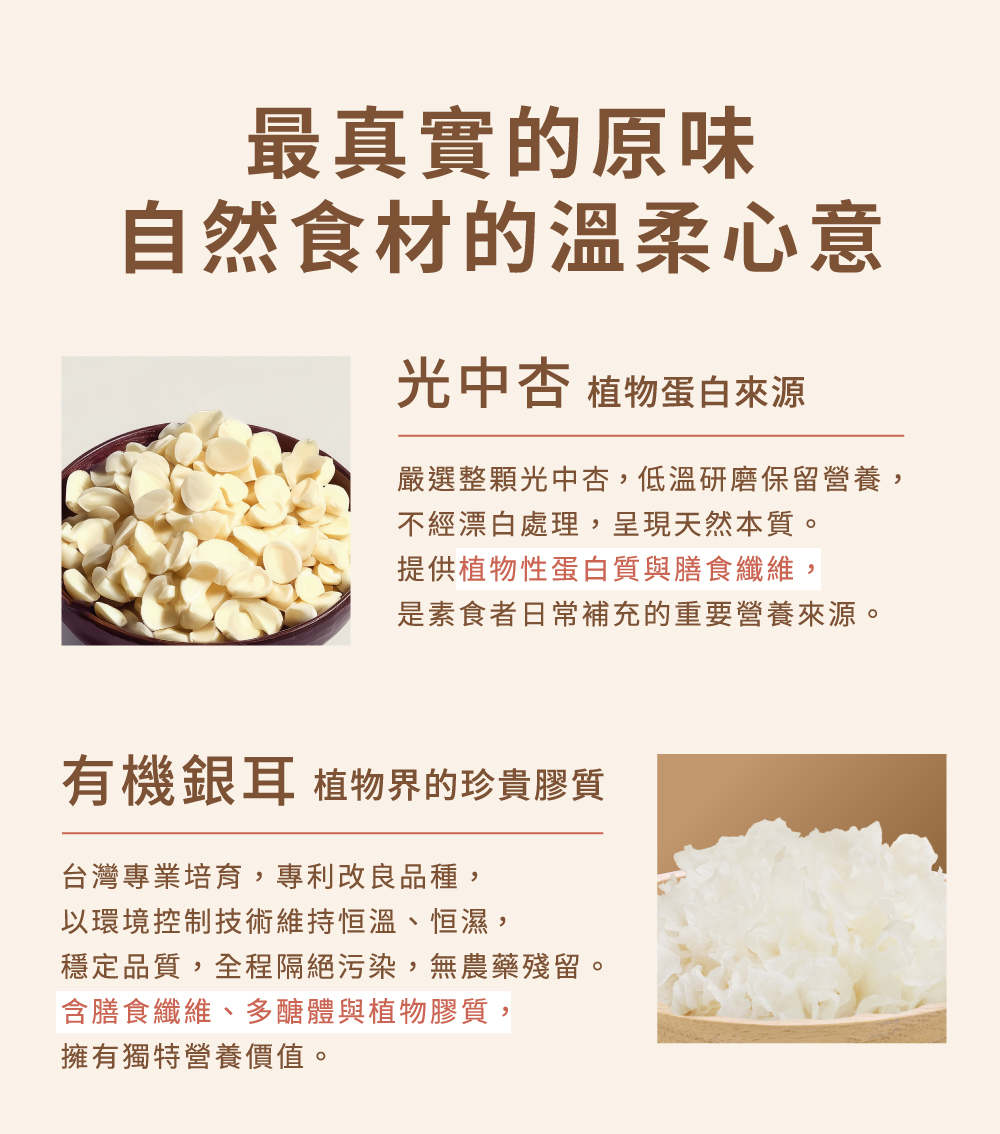 .嚴選光中杏、台灣有機雪耳,香濃純粹口感滑順