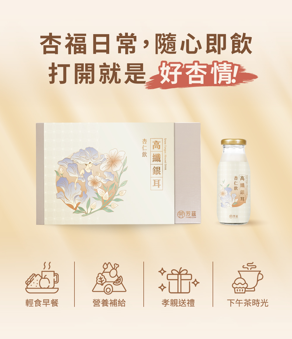 名稱:高纖銀耳杏仁飲(全素)禮盒款5瓶/盒(贈精美提袋)