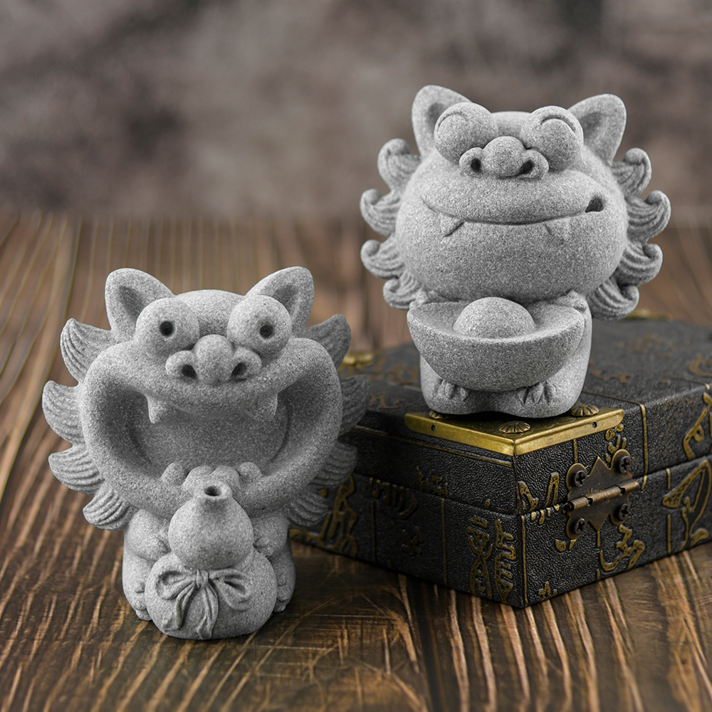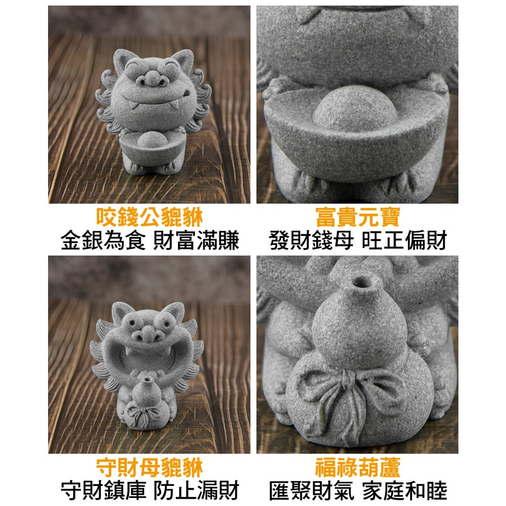 這款外型可愛的『招財福祿獸』,以貔貅為設計靈感,貔貅是傳統文化中的瑞獸,具有祥瑞與避邪之意的吉祥物。據說擁有神奇的力量,可以帶來好運、財富和平安。一公一母貔貅,公貔貅負責出外咬錢回家,母貔貅在家中孵財守庫,幫助活絡全家財運,富貴迎門。此款商品除了本身為開運擺件,還附贈了香插座與檀香立香,不僅可以作為一般的擺件使用,還有香座的功能,燃燒檀香能淨化空間磁場,帶動財氣風水,將財源引入,形成富貴磁場;每天回到家中點一枝檀香,不但可以沉澱身心靈放鬆心神,同時也讓生活充滿悠然禪意。