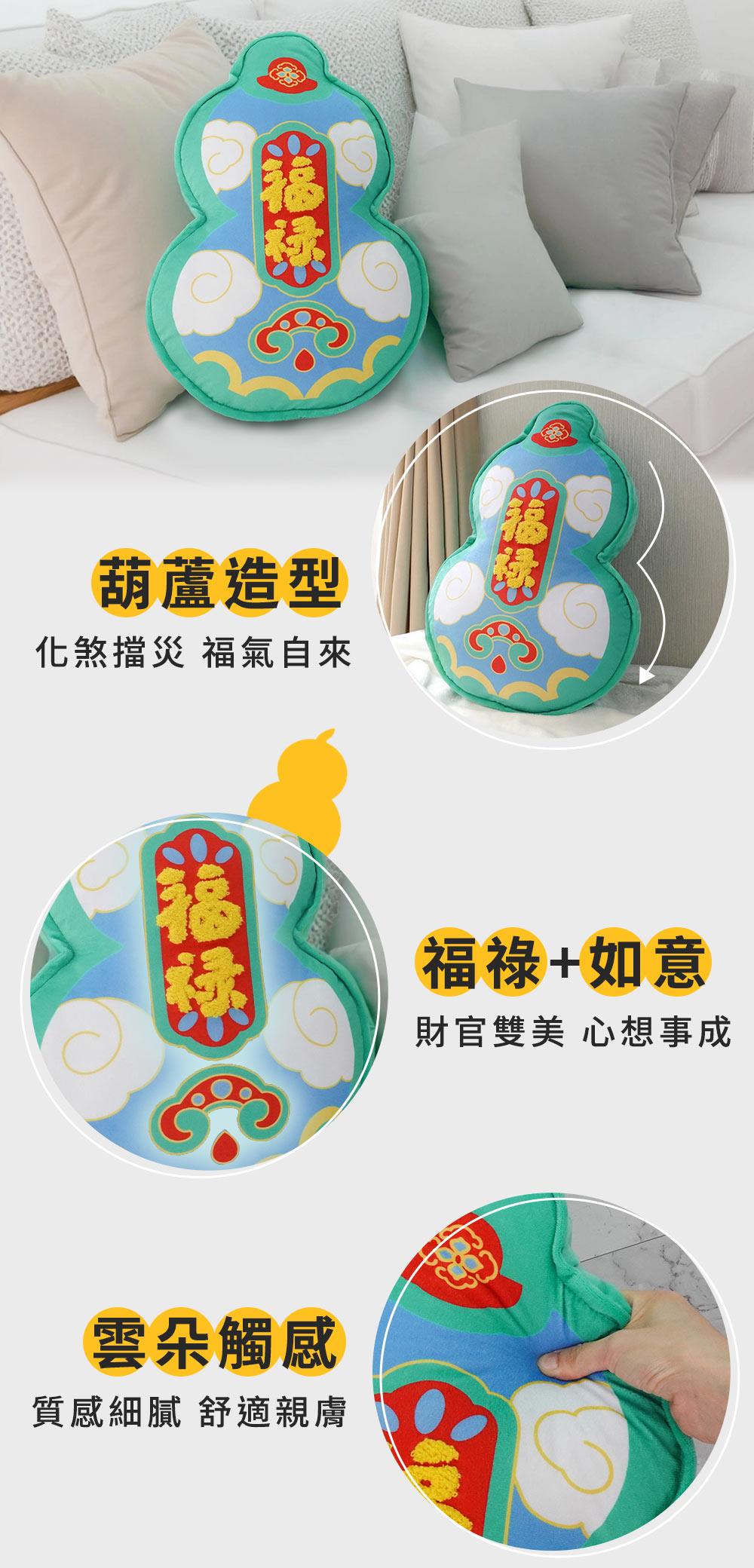 新春入厝禮 好運就是你的靠山【命運好好玩】福祿雙全抱枕 葫蘆靠枕+財鹿葫蘆除穢包(1入)