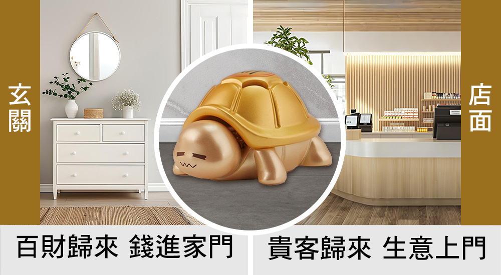 金錢龜來聚寶鎮有多會招財?首先,龜殼內的先迷你小錢龜象徵大龜生小龜=雞生蛋、蛋生雞,財富能量相生不息。第二,36顆金元寶代表36 天罡神力,在龜殼裡開啟護財結界,幫你擋掉財煞破財,把好機會和好財運都鎖在你身邊。第三,放進一枚你自己的1元錢母,讓整個錢龜鎮能量與你相應、為你所用。最後,把錢龜鎮安坐在黃財神心咒墊上,就像請財神親自下凡幫你撐腰護法,財氣穩穩在線,賺錢底氣直接拉滿,無論是家裡財位、辦公桌旁,還是店面櫃台,都很適合擺上一隻錢龜坐鎮。上班族拿來守薪水、業務用來衝業績、老闆則補財庫,每隻「龜系守財員」,讓錢乖乖待在你身邊不亂跑!