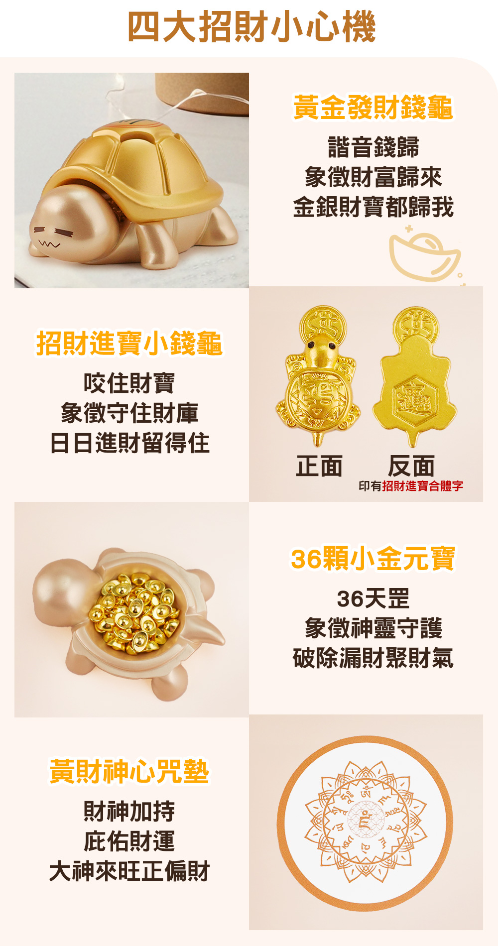 【錢母引財→元寶聚財→咬錢龜生暗財→財神護法】