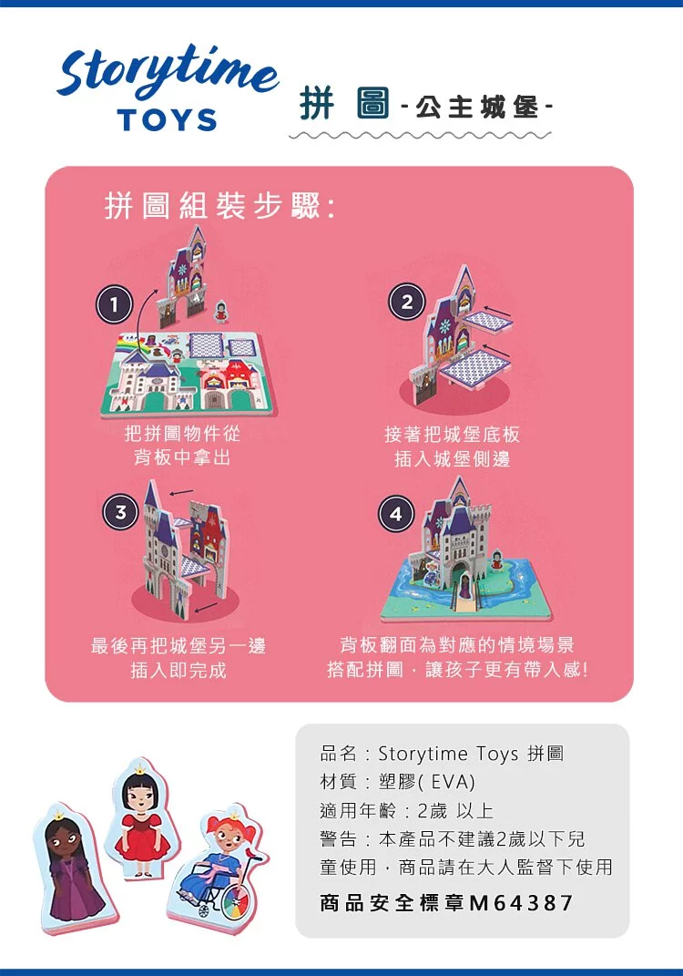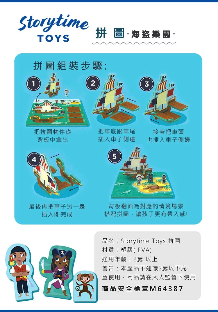 玩具由環保EVA製成,壓片將零件固定在一起,無需螺釘或膠水。