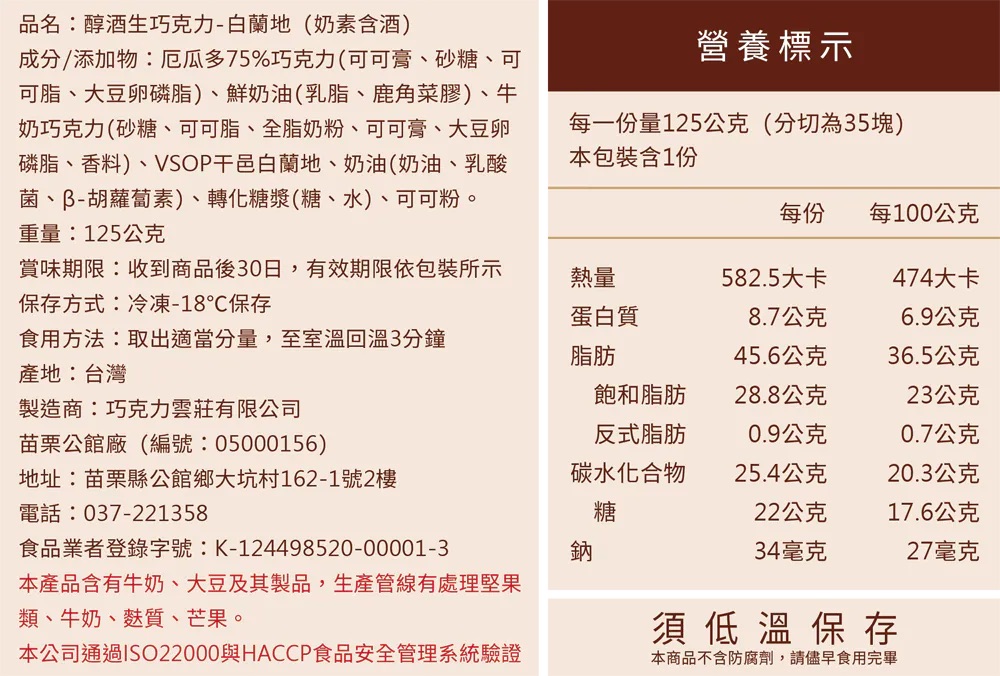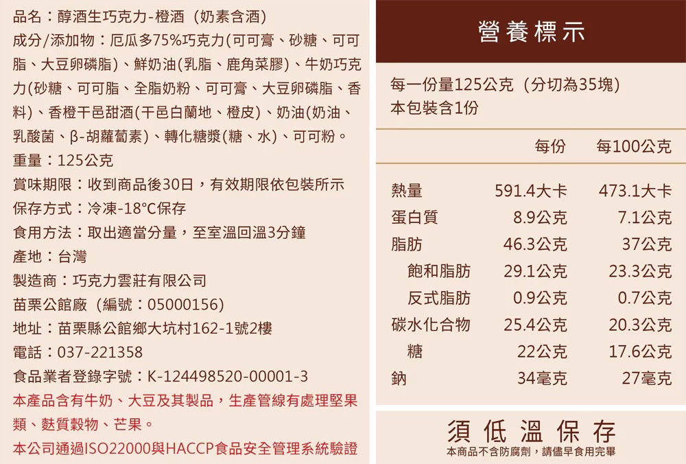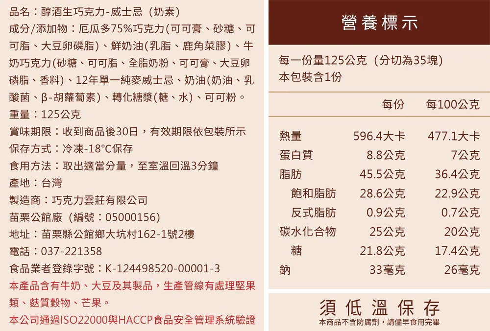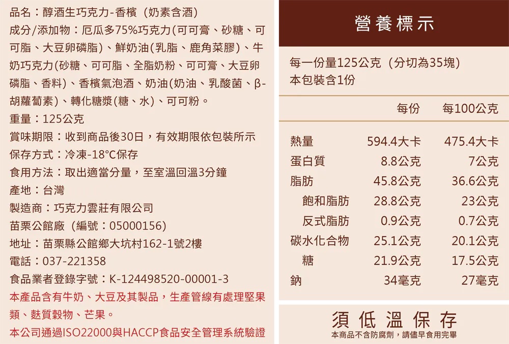 本產品含微量酒精成分,請酌量品嚐。