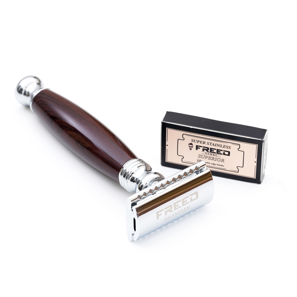 [快速出貨]【FREED】封閉式復古雙刃安全刮鬍刀- 仿紫紅檀木 (附刀片10片) 客製化刻字 生日禮物 送禮推薦 男生禮物 現貨 摩羯座 水瓶座 禮物獨家 新品上市 情人節禮物