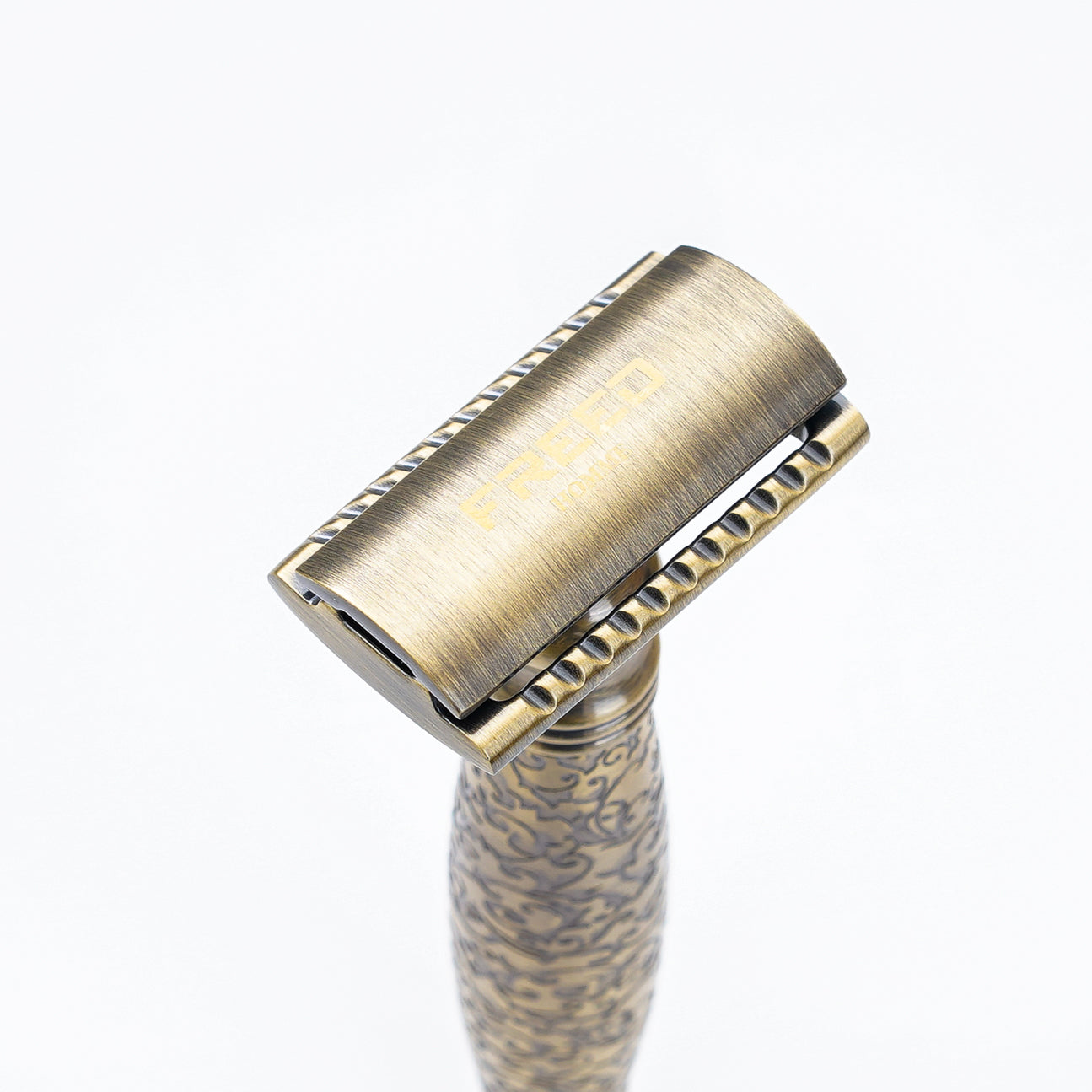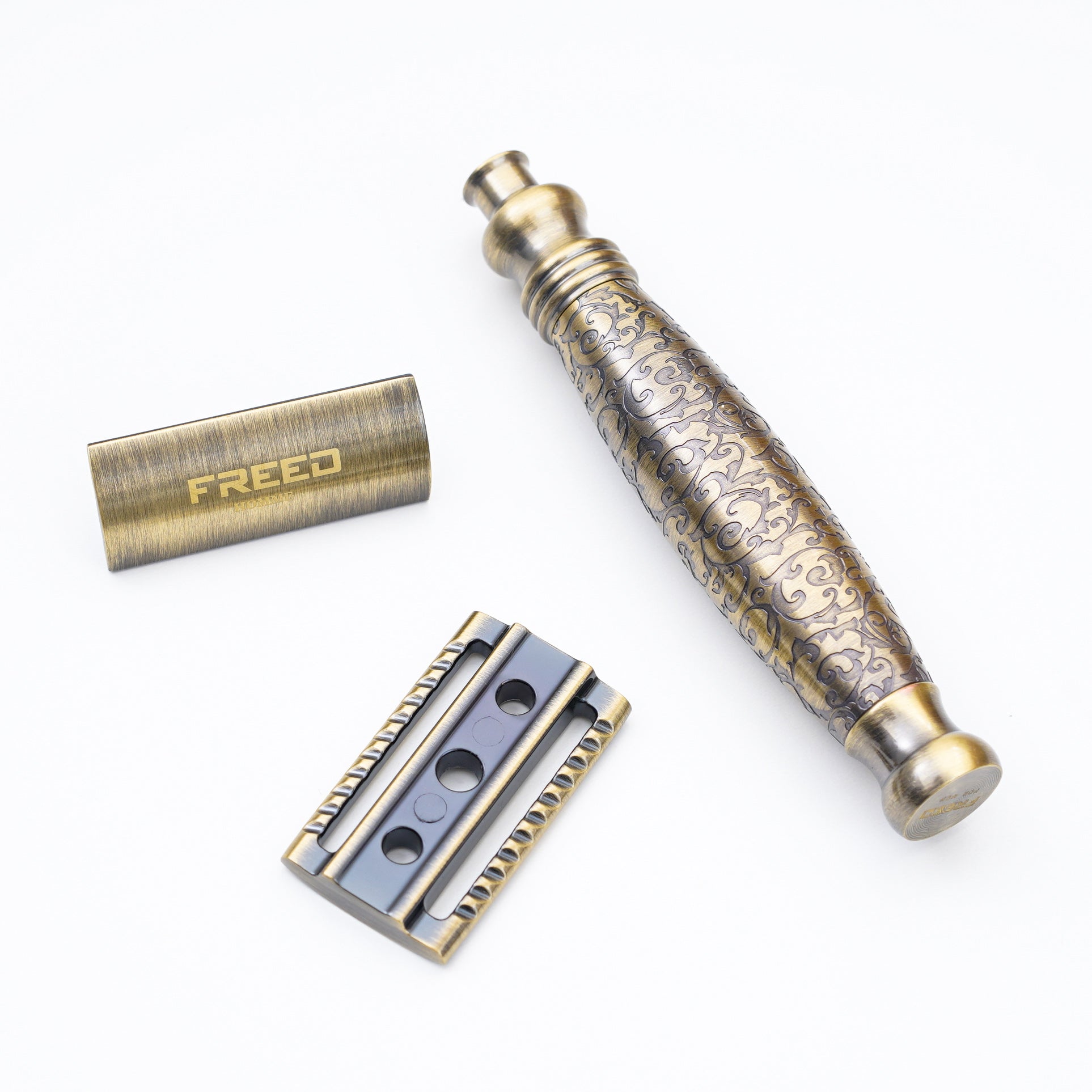 [快速出貨]【FREED】封閉式復古雙刃安全刮鬍刀 - 仿古銅蝕刻雕花 (附刀片10片) 客製化刻字 生日禮物 送禮推薦 男生禮物 現貨 摩羯座 水瓶座 禮物獨家 新品上市 情人節禮物