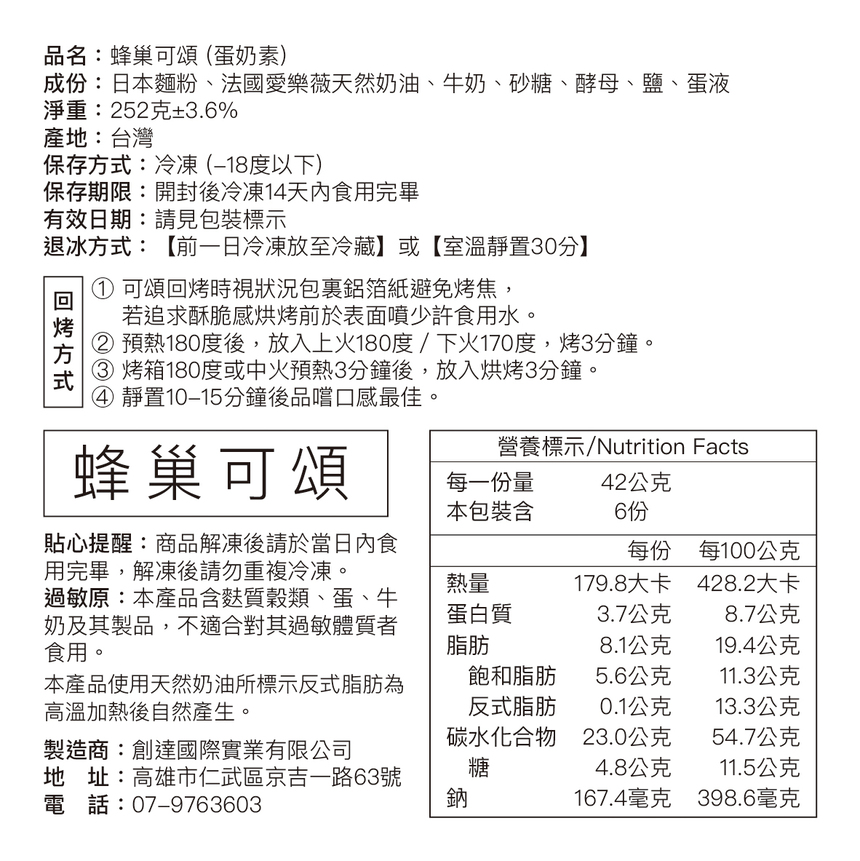 過敏原:本產品含麩質穀類、蛋、牛奶及其製品,不適合對其過敏體質者食用。