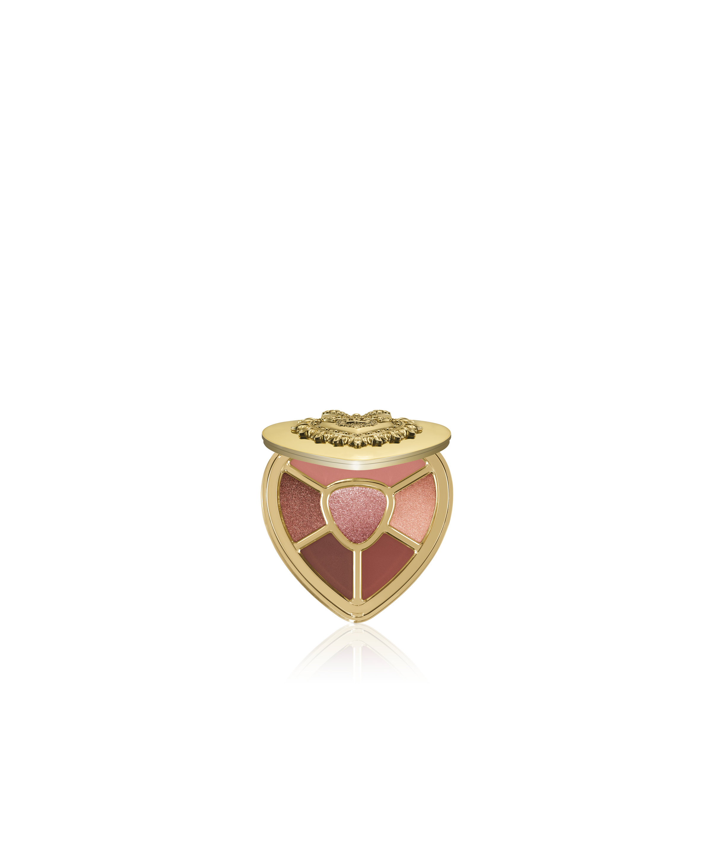 每盤眼影皆盛裝於心型金色外盒,綴以 Dolce&Gabbana 象徵性的 Sacred Heart 聖心,內附隨身鏡,輕鬆完成任何場合的眼妝演繹。