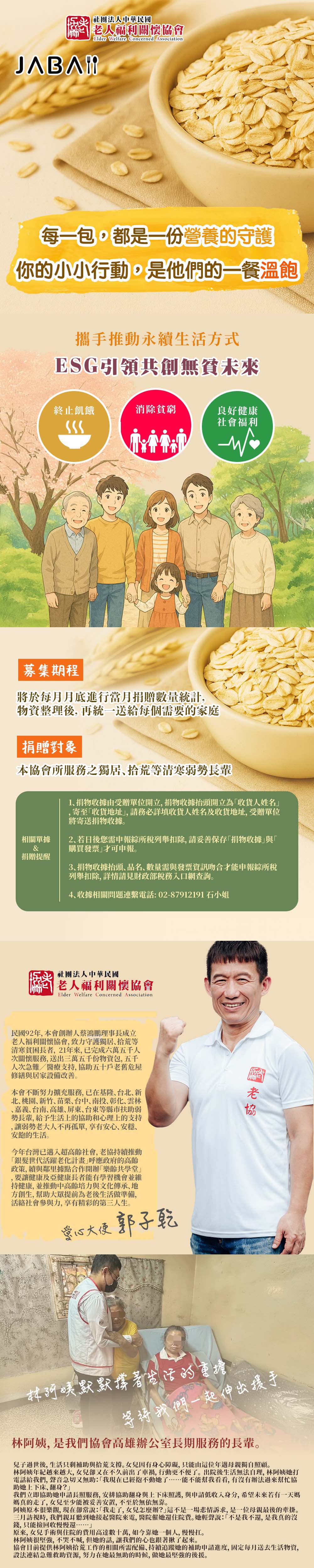 品名:【老人福利關懷協會xJABA】關心12個家庭 大燕麥片愛心12包組(購買者本人不會收到商品)