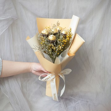金莎花束搭配進口乾燥滿天星與卡斯比亞,可以散發出淡淡的幸福香氣。