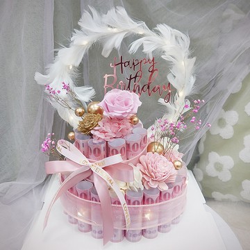 永生花鈔票蛋糕使用日本進口永生玫瑰花製成。
