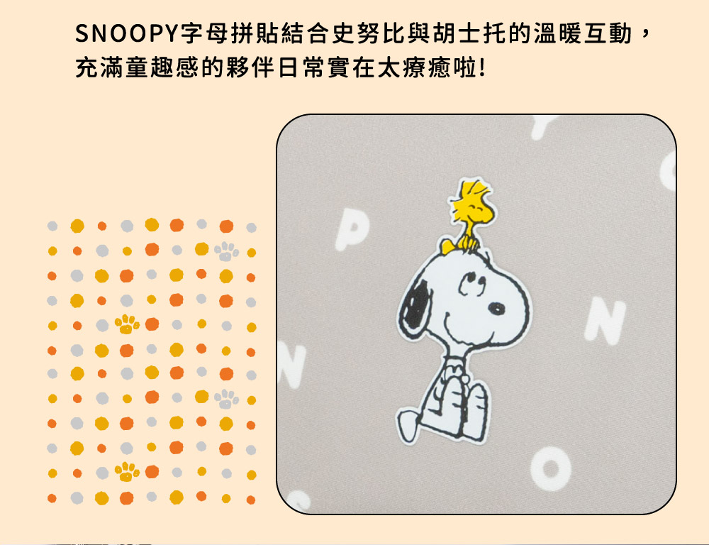 - SNOOPY字母印花×史努比與胡士托可愛互動模樣